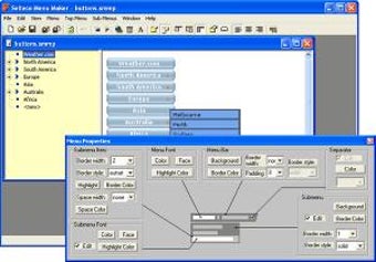 Selteco Menu Maker bietet eine in zwei Fenster aufgeteilte Oberfläche. In einer Echtzeitvorschau sieht man jederzeit, wie das Menü gerade aussieht. Über das Eigenschaftsfenster kontrolliert man alle Elemente des späteren JavaScript-Menüs. Per Mausklick ändert man Schriftarten, -größen und –farben, wählt Größe und Farbe der einzelnen Menüpunkte aus und legt Abstände fest. Auch die Beschriftung sowie die einzelnen Links trägt man bequem über kleine Popup-Fenster ein. Ist das Menü fertig und an man nur noch in das HTML Ihrer Homepage einbinden muss.